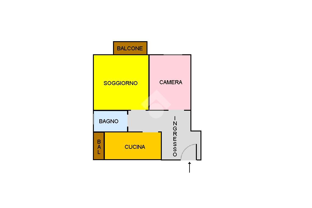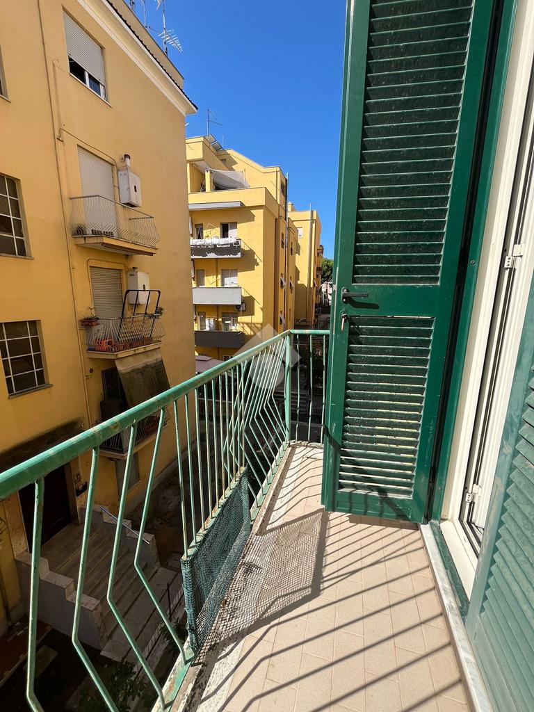 L'immobile internamente si presenta in discreto stato, gode di una doppia esposizione angolare (sud - est) ed è composto da un ampio ingresso, soggiorno, camera da letto, cucina, bagno e due balconi.